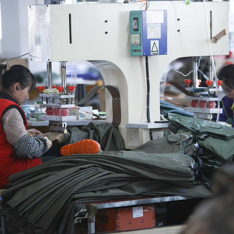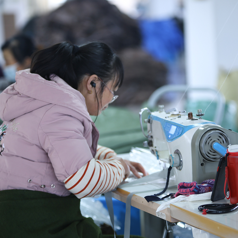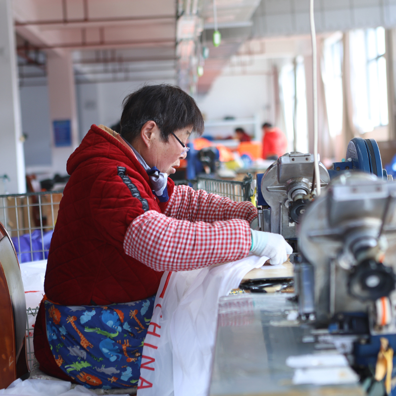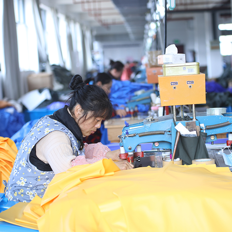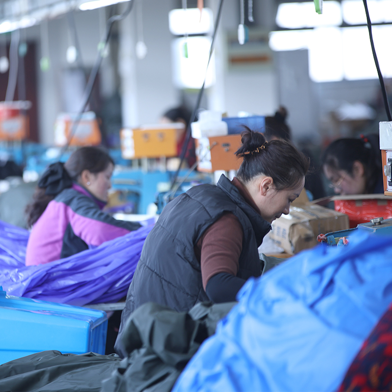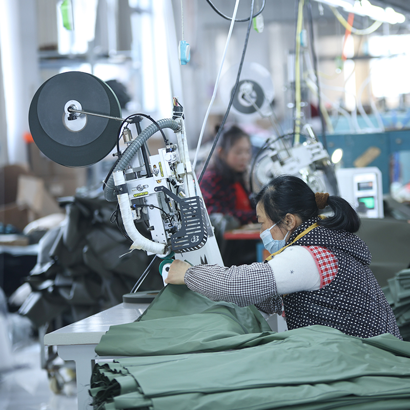 În prezent, există 10 linii de producție, peste 60 de mașini de înaltă frecvență, fiecare dintre ele poate găzdui două persoane, mai mult de 20 de mașini de cusut și mai mult de 200 de operatori. Pentru a oferi o experiență de achiziție eficientă și de înaltă calitate, avem, de asemenea, 3 personal de inspecție a calității și 5 personal de cercetare și dezvoltare.