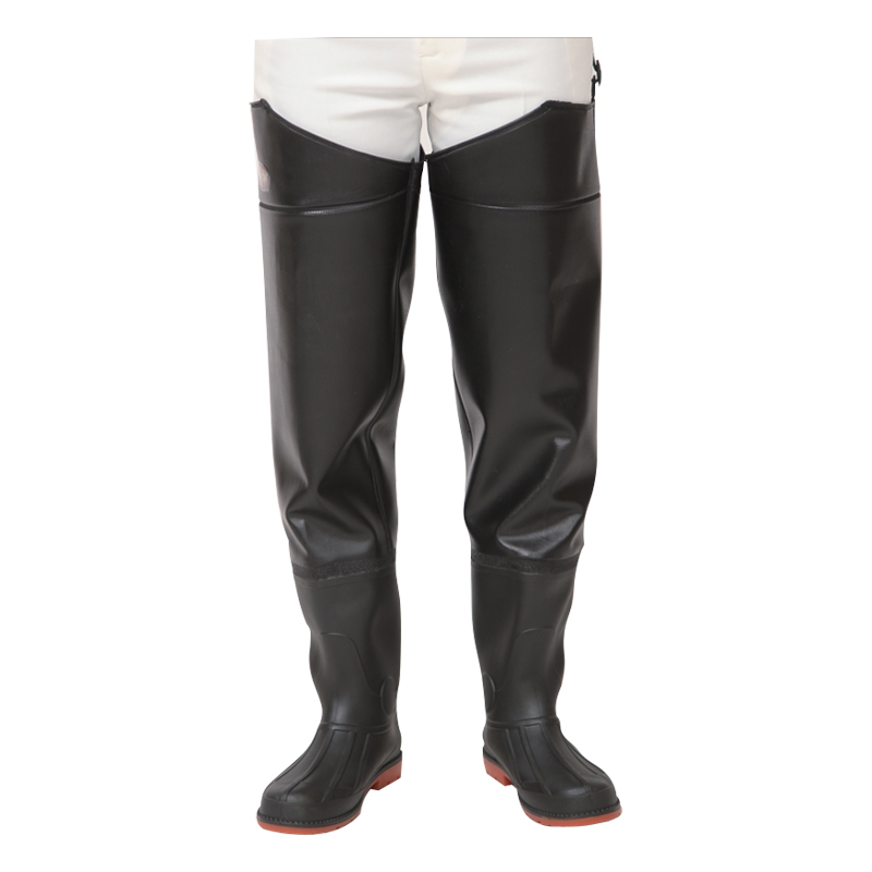 PVC Boot Foot Hip Waders sunt pantaloni până la șold, fabricați în întregime din material PVC, cu proprietăți bune de impermeabilitate. Designul său unic Boot Foot integrează cizmele cu partea inferioară a pantalonilor, astfel încât utilizatorii nu trebuie să poarte încălțăminte suplimentară atunci când îi poartă. Acest lucru facilitează îmbrăcarea și scoaterea purtătorului și împiedică în mod eficient pătrunderea apei prin deschiderea cizmei. Lungimea de design a acestor pantaloni cu cizme pentru piept acoperă fesele și mai sus, făcându-le mai potrivite pentru utilizare în situațiile în care nivelul apei este la o anumită adâncime. În ceea ce privește designul, deși lungimea acestui produs este relativ mare, nu va afecta libertatea de mișcare a utilizatorului. Materialul din PVC este moale și confortabil și se poate potrivi bine corpului utilizatorului, ceea ce face din PVC Boot Foot Hip Waders un echipament practic utilizat pe scară largă în diverse activități acvatice și lucrări în aer liber, cum ar fi pescuitul, lucrările agricole, curățarea râului etc.